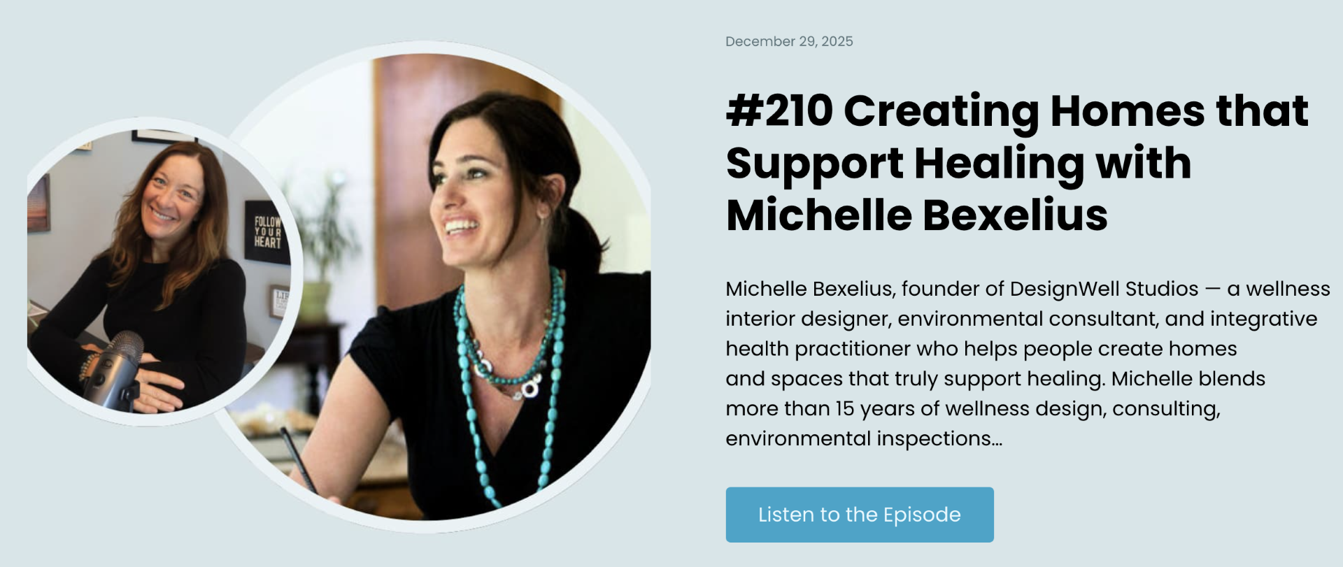 What is Biophilic Design? It's all about connecting with nature and bringing nature in as a design element within built environments to increase occupant connectivity and overall well-being. It's a concept used in commercial spaces, but Michelle Bexelius from DesignWell Studios is blazing the way to bring biophilic design into our home environment. DesignWell Studios is an environmental wellness design and testing company that optimizes built environments that promote beauty, health + well being. They offer state of the art, professional environmental testing services that allow their clients to see if their home or workplace has issues from poor air or water quality, mold or high levels of EMFs that could have negative effects on their health and well being. They offer education, creative design hacks and products and services to help remedy spaces so people can thrive. Michelle has so much knowledge to share with us, we will have to have her on again, today we are focused on biophilic design in the home. So if you are wondering how you can create a space that not only looks good but feels good and it also supports the wellbeing of you and your family, you won't want to miss this awesome interview. Let's grow!